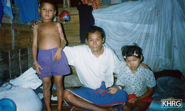 Photo # 11-50: 46 year old Saw K--- from N--- village in Than Daung township of Toungoo District lost his son to an SPDC landmine. Major Aung Ko Lin, battalion commander of IB #53, acting under the direct orders of Captain Thet Oo, Operations Commander of Southern Regional Military Command's Strategic Operations Command #3, planted many landmines along the banks of the Klay Loh River in early 2002. Saw K---'s son Saw Si Si Htoo was only 14 when he was killed outright by one of these mines while fishing in the Klay Loh River on April 26 th 2002. [Photo: KHRG]