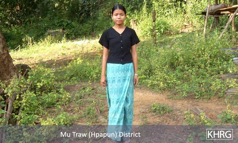Naw R---, 17 (right), and Naw S---, 25 (below) are schoolteachers in Papun district. The villagers try to provide them with food as payment for teaching but are usually unable to provide enough. Naw R--- lives in a house the villagers built for her, where she raises chickens as a way to get money to go home during the school holidays. On August 28 th 2005, SPDC troops from Light Infantry Division #44, Infantry Battalion #207 Column 2 came and stayed a night in the village, and the next morning they stole four of her chickens. She says she didn't dare complain for fear of retaliation. The second photo shows Naw S--- also receives very little for her work, yet when the same SPDC Column came to the village where she teaches on October 9 th 2005 they stole her watch from the cloth bag in her house when she wasn't there. She can't afford to buy a new watch so now she has to constantly borrow watches from other people in order to teach her classes on time. [Photos: KHRG]