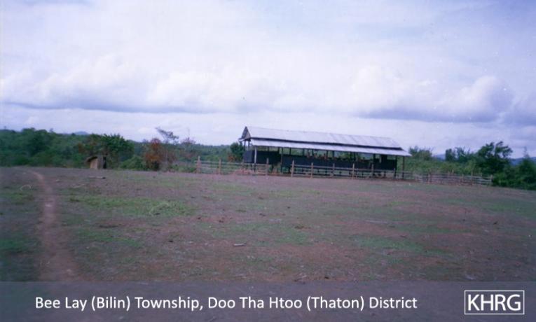 Teacher A---, 45, is a village schoolteacher in eastern Thaton district. He wants to teach Karen language to the children in the school but the SPDC authorities have forbidden him from doing so. The SPDC forces all subjects to be taught in Burmese. Ironically, teachers are allowed to teach foreign languages like English but not Burma's own languages apart from Burmese. The second photo of Kway Lay school in Bilin township, Thaton district was taken on May 26 th 2005. The villagers were forced to provide all the materials and build the school, then to pay for all of its running costs, yet the SPDC calls it a government-supported school and claims credit for it. [Photos: KHRG]