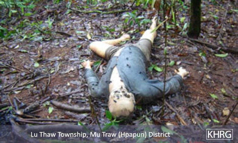 "A person I knew from Mandalay prison named Lwan Maung... fell down on the ground. The soldiers beat him. He could not stand up again. He tried to roll away into a gorge but then the SPDC captain shot him in the head with his pistol and killed him there. That captain was very cruel. He beat and punched porters who could not walk. He threatened to shoot us like the other one he had shot. I heard that three porters died along the way."
