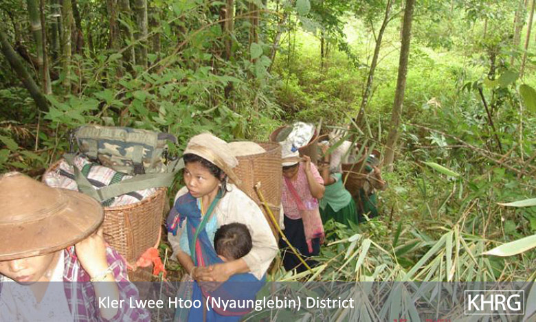 This increased militarisation has directly impacted the mostly rural villagers of Nyaunglebin District from whom local SPDC forces have sought to exploit labour, money, food and other supplies. The villagers of Nyaunglebin District, however, have resisted this exploitation in numerous ways and fled where possible in order to avoid compliance with military demands altogether. As local SPDC personnel are unable to extract labour, money, food and other supplies from those civilians whom they cannot catch, the Army has deemed the entire population to be legitimate military targets and sought to forcibly relocate all civilians into military-controlled relocation sites. Despite the ability of many villagers to evade this forced relocation the SPDC has nevertheless managed to inter large numbers of civilians at these sites.[1]