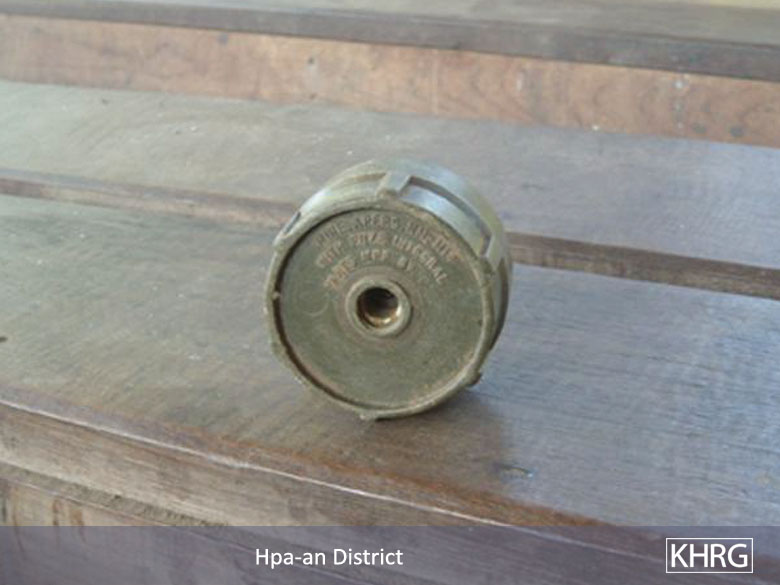 In August 2008, KHRG field researchers operating in T'Moh village tract of Dta Greh Township encountered an SPDC-deployed M-26 landmine. Although SPDC forces have reportedly deployed this type of landmine in the past it has - before this instance - not been recently been encountered. SPDC soldiers had lain the landmine around a camp in T'Moh village tract and left it behind after withdrawing from the area. In a correspondence with KHRG in December 2008, Landmine Monitor provided the following statement about this mine: