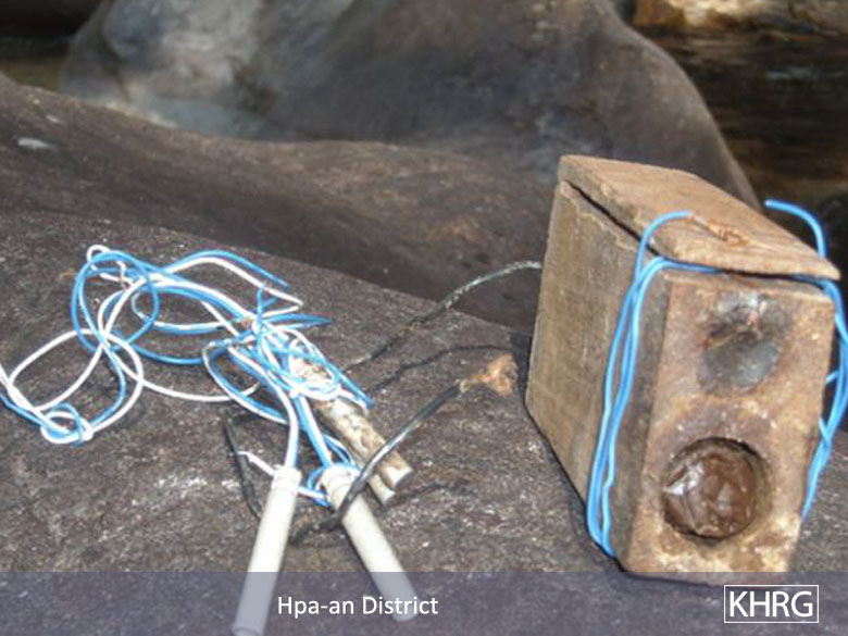KNLA forces operating in Pa'an and Dooplaya District - like their DKBA counterparts - make use of handmade landmines fabricated from glass bottles, metal pipes and wooden blocks. As with the DKBA's handmade landmines, the KNLA mines typically last for about six months before becoming inactive. KNLA forces employ landmines as a means of ambushing SPDC and DKBA patrols or as a defensive barrier around KNLA army camps and IDP hiding sites.