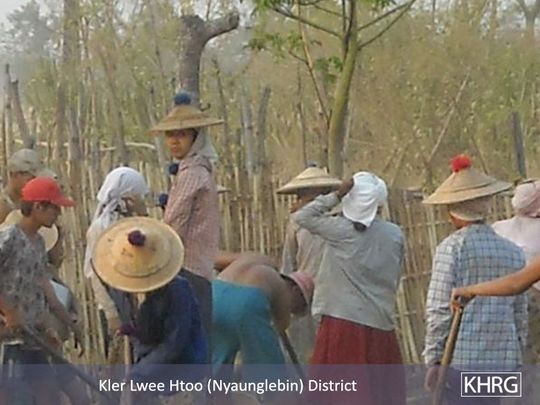 Forced labour is one of the most common abuses in SPDC-controlled areas of Karen State, including Nyaunglebin District. Forced labour is used by SPDC soldiers active in contested frontline areas as well as by soldiers based in areas under more established SPDC control, such as in the plains and along vehicle roads. A KHRG field researcher operating in Nyaunglebin District explained that forced labour is, in some areas, a daily occurrence which local villagers have had to learn to deal with. Being a frequent abuse, forced labour has significantly impacted the wellbeing households and communities as individuals must repeatedly take time away from their own livelihoods in order to meet the demands for labour imposed upon them.