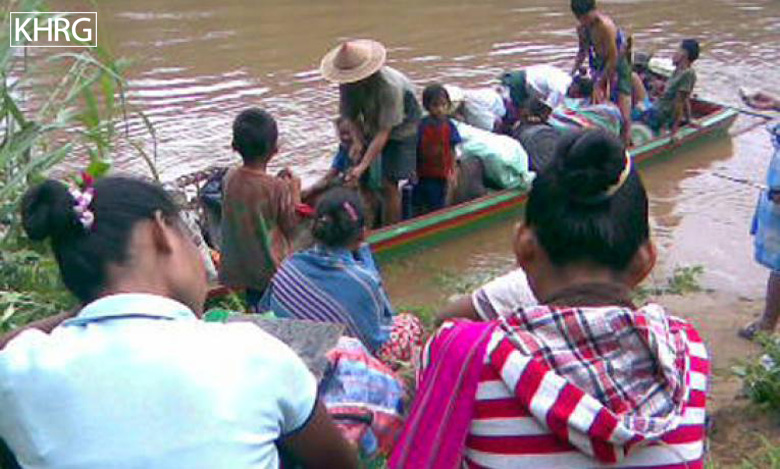Displaced villagers flee to Thailand by boat as they leave Ler Per Her IDP camp on June 5th 2009. [Photos: KHRG]