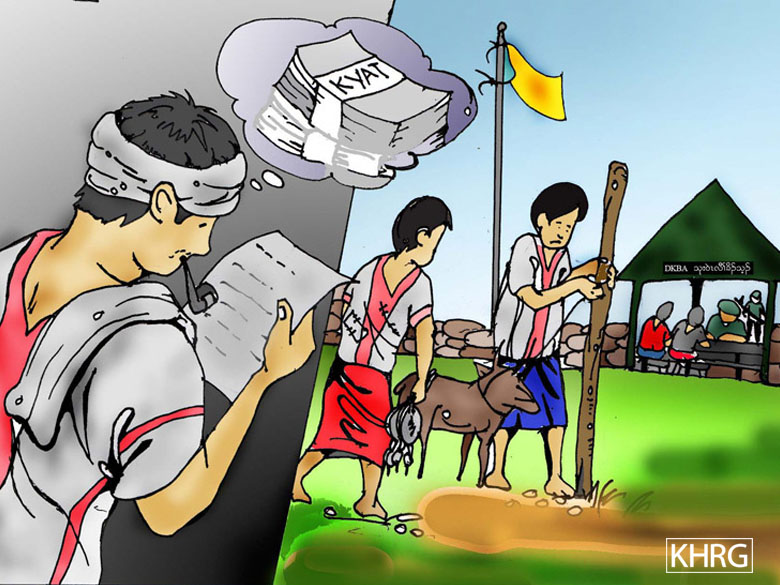 External accounts of life in rural Burma have long been shaped by narrow stereotypes of helpless victims and intransigent oppressors. However, as KHRG has increasingly documented, such portrayals fail to accurately reflect the dynamics of life under military rule and the (albeit disadvantaged) efforts which regular people employ to resist abuse, renegotiate relations of power and assert control over their lives. As international engagement in Burma increases, a far more nuanced understanding of local-level political processes remains crucial to developing a rights-based approach to aid provision. To that end, the present report provides summaries of three recent incidents in which villagers sought to negotiate a change or reduction in military demands. All three accounts deal with orders issued by DKBA forces in Papun and Thaton districts of Karen State during May and June 2009. In a departure from the usual KHRG reporting style, these accounts have been supplemented with illustrations based on villagers' descriptions of events provided to KHRG by an independent illustrator.