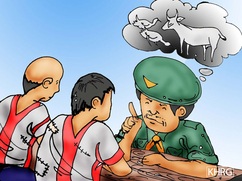 The commander looked at the goat and the chicken meat. He then spoke in a calm voice to the village head and the accompanying villagers, saying "We'll release the two villagers. And anyway, we can't do anything if you can't provide us with the money. But, we can eat the goat and chicken that you've brought for us." The commander then took the goat and chicken meat (valued together at about 30,000 kyat (US $27.28)) and the detained villagers were released the subsequent day (May 29th 2009).