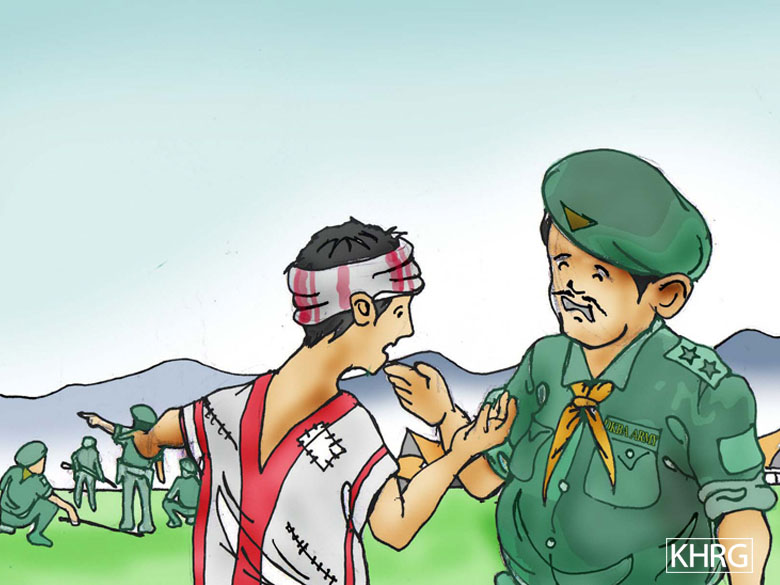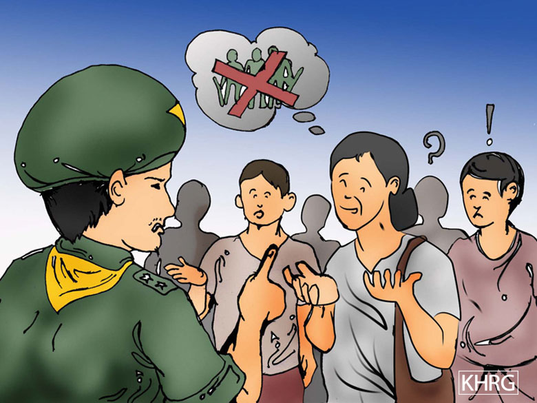 However, Brigadier Maung Gyi retorted, "If village heads can't send any villagers for new recruitment, we'll come to your village and arrest the villagers we see." The same woman then responded,