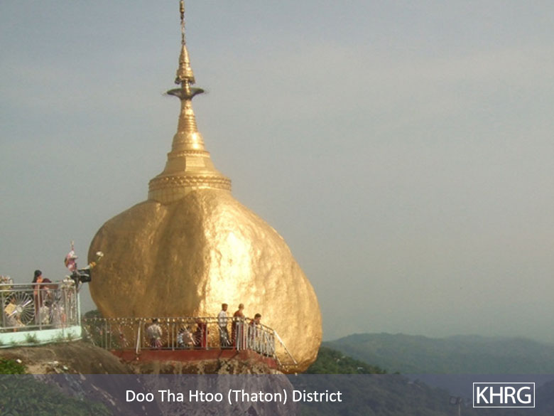 Thaton District is Karen State's most eastern district and the area where State Peace and Development (SPDC) control is most consolidated. Primarily flat agricultural land, the district sees only intermittent activity from the Karen National Liberation Army (KNLA), which holds no fixed positions. Visits from foreign tourists are even a casual occurrence at a few sites in the eastern and southern parts of the district, including boat trips up the initial reaches of the Salween River and to the famous Kyaikhtiyo "Golden Rock" Pagoda in Kyaikto Township. This contrasts starkly with other Karen areas, where access by foreigners is chiefly limited to aid groups operating covertly from Thailand.