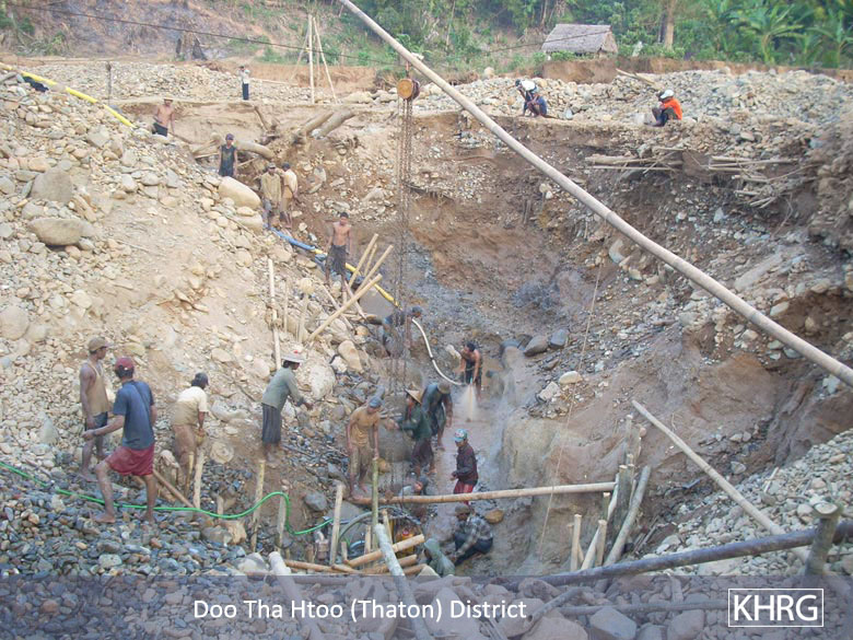 These photos, taken during February 2009, show gold mining operations in Shwegyin and Dweh Loh townships, bordering northern Thaton District in Nyaunglebin and Papun districts. In October 2009, the DKBA began expanding similar mining operations in Bilin Township, Thaton District. [Photos: KHRG]