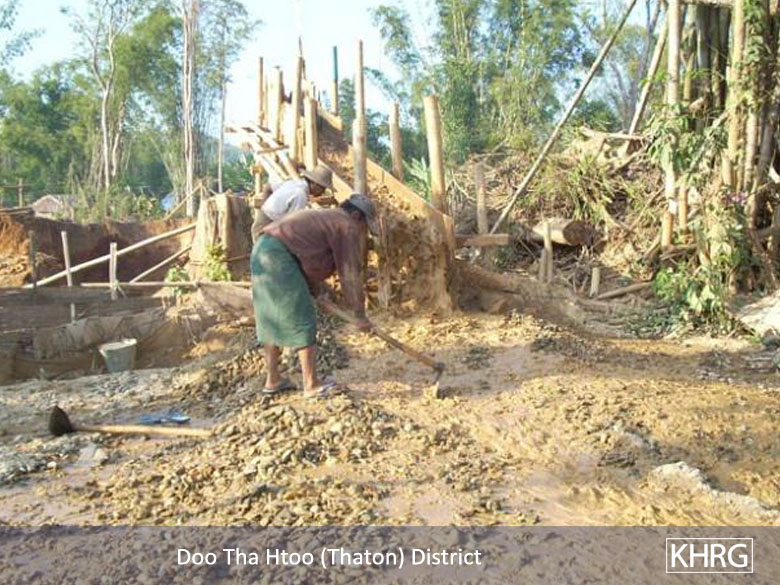 [7] Other villages required to provide unpaid forced labourers for the project include Thay La Bpaw, which had to provide 25 villagers daily, Noh T'Ray, which had to provide 20 villagers, Htee Poe Neh, which also provided 20 and Gkoh Dah Gyi, which provided 15.