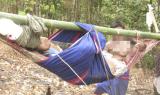 This photo, taken on March 29th 2010, shows Saw Pu--- being assisted by other villagers. The villagers put him in a stretcher constructed from a hammock slung from a bamboo pole to carry him to Ba--- for treatment. [Photo: KHRG]