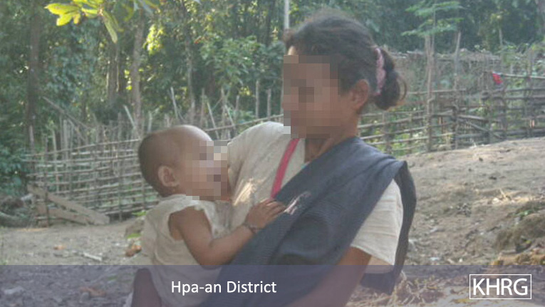 This photo, taken on February 1st 2011, shows Naw L---, 24, and her one-and-a-half-year-old daughter. Naw L---- told KHRG that her husband, Saw T---, 27, had been arrested and executed by BGF soldiers from Battalion #1015 who had accused him of contacting and spying for the KNU. [Photo: KHRG]
