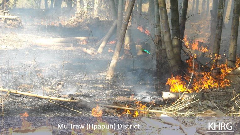 Tatmadaw LIB #252, under the control of Battalion Commander Thein Zaw, is currently based at a hilltop camp near Plah Koh village, on the Kyaukkyi to Saw Htah vehicle road, approximately two hours on foot from the location of the attacks. Soldiers from Karen National Liberation Army (KNLA) 5th Brigade are also active in the area. According to local sources, prior to the attack on February 25th, no clashes between the KNLA and Tatmadaw had recently occurred in the area. The attacked area hosts a number of communities that are in hiding and actively evading Tatmadaw forces in the hills east of the Pwa Ghaw – Kler Lah vehicle road, between Plah Koh, Saw Muh Bplaw and Ler Muh Bplaw village tracts.[2]