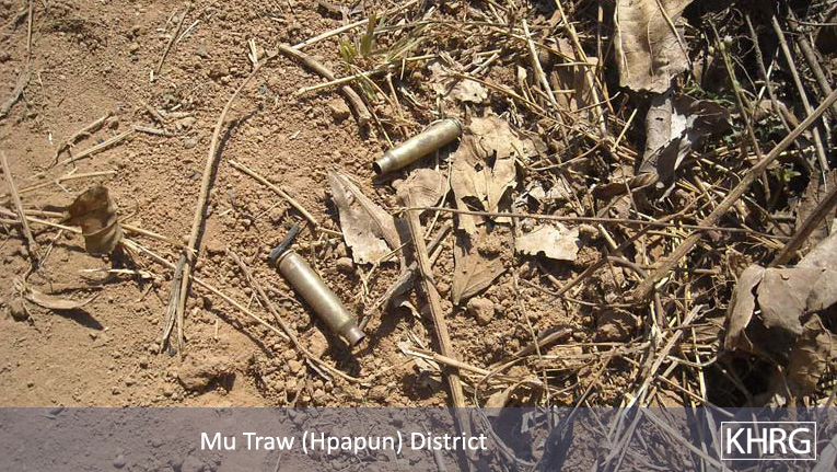 According to reports from the local village heads that spoke with KHRG, no villagers were injured or killed during the shelling and all managed to flee their villages and take refuge at temporary hiding sites in the forest. While many villagers had to flee without warning, three villagers interviewed by KHRG following the attacks on February 25th described how people in their communities, or they themselves, moved to safety because of warnings received from other villagers. The village head of Gklaw Bpaw Kee, a village in Saw Muh Bplaw village tract from which residents fled during the shelling, described how other community members came to warn him of the attack while he was in his hill field outside the village. He explained that, even though the villagers were unable to find him at that time, they fired three warning shots from a gun to communicate that Tatmadaw troops were firing mortars near the village.[6]