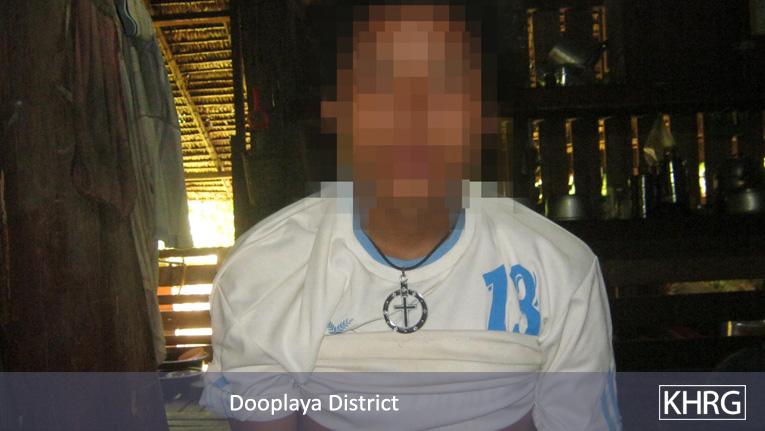 This photo, taken on April 29th 2011, shows Saw T---, 17, a resident of Sa--- village who was travelling on the road between Kyaikdon and T'Aye Shay on April 24th, when DKBA forces ambushed soldiers from Tatmadaw IB #283. Saw T--- said that many civilians had been returning along the road from a festival at a local pagoda, and that a 17-year-old resident of T'Aye Shay was killed during the clash. [Photo: KHRG]