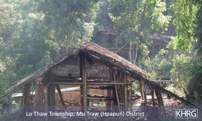 [17] The two southeastern most village tracts in Lu Thaw Township – Baw Thay Htah and Gk'law Htah – are under Tatmadaw control and should not be considered 'shoot-on-sight' areas in which civilians and civilian objects including settlements, schools, hospitals, food stores and agriculture, and agricultural and cooking implements are considered legitimate military targets by Tatmadaw forces. For background on Tatmadaw practices entailing targeting of civilians see;Submission for UN Universal Periodic Review: Human rights concerns in KHRG research areas, KHRG, June 2010.