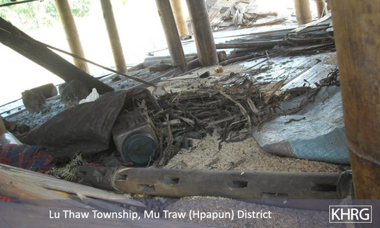 Some villagers, particularly in northern Lu Thaw Township, have explained to KHRG researchers that the high risk of attack while cultivating land close to Tatmadaw forces and infrastructure has led individual some villagers to employ uses of small arms and landmines as part of their strategies to counter food shortages. Villagers have utilised weapons to protect themselves and other community members while attempting to cultivate lands where the risk of Tatmadaw attacks are perceived to be high. Such armed protection measures may be employed by individuals or locally-organised 'home guard' groups, with varying degrees of cooperation with, and autonomy from, local KNLA forces; although several villagers interviewed by KHRG researchers have indicated that armed self-protection strategies have emerged in response to declining KNLA capacity to provide security for their communities amid ongoing Tatmadaw attacks.[42]