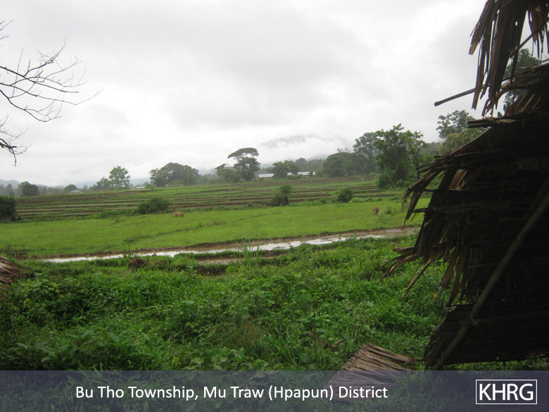 This report includes a situation update submitted to KHRG in April 2012 by a community member trained by KHRG describing events occurring in Bu Tho Township, Papun District, prior to April 2012. It contains updated information concerning an increase in Tatmadaw and Border Guard military activity since the January 2012 ceasefire agreement with the KNU, including more frequent transportation of rations, building materials and weapons, and an increase in troop deployment. It describes how Tatmadaw LIB #341, #434, #340, and #642 have established permanent bases by the Papun vehicle road, and how troops reportedly remain stationed at numerous bases along the Thailand-Burma border. Land confiscation for infrastructure projects and the construction of military bases and plantations is highlighted as a significant issue, and continued natural resource extraction also serves to limit the amount of cultivatable land available. State-led development projects at the village level are also cited as contributing to land confiscation as a result of demands for land from government officials involved. Information is also provided on the construction of a new village in Meh Pree Township by a monk in command of approximately 20-30 soldiers. Villagers continue to face demands for food and goods, such as thatch shingles, and demands for forced labour. Significantly, demands for money, or for villagers to serve as soldiers and guides or to perform sentry duty, has reportedly ceased, and there has been a reduction in travel restrictions since January 2012. Some limited landmine clearance is reported to have occurred after villagers discussed the problem with a Tatmadaw officer. Other villagers have adapted to the reduction of suitable farmland by trading livestock and transporting food to sell. Villagers also refused to comply with demands for land in exchange for electricity, and confronted officials over the issue.