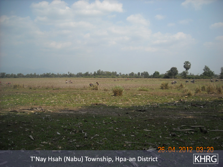On April 10th 2012, when I arrived in T'Nay Hsah Township, I saw many villagers who were complaining differently in many villages. Some [villagers] do not dare go to their paddy farms or to their plantation farms. A reason for this, is that the Border Guard had planted landmines in their plantations, so some of the villagers were injured and many of the villagers' farm animals, such as cows, buffalos and goats were killed.
