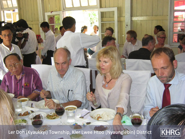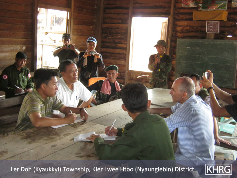 On May 28th 2012, the Norwegian Deputy Foreign Affairs Minister, the Norwegian Ambassador to Thailand, Cambodia and Burma, and many representatives came to Ler Doh. The government leader General Kin Yin and KNU leader Major Htoo Htoo Lay came and managed the meeting with the IDPs in Kheh Der village tract. Thirty representatives for the villagers came to the meeting in the KNU liaison office in Ler Doh. During the visit, Norwegian leaders, the government leaders and the KNU leaders were talking a lot. General Kin Yin gave temporary ID cards to the 30 representatives of the villagers in IDP Kheh Der village tract. Norwegian deputy foreign affairs minister said, "I will support the villagers and I have already prepared $5,000,000 for the IDP's to rebuild their lives. Norway representative, Mr. Charles Petrie, takes responsibility for the Norwegian support. CIDKP takes responsibility for working with the villages' Human Right Committee in the IDP areas."