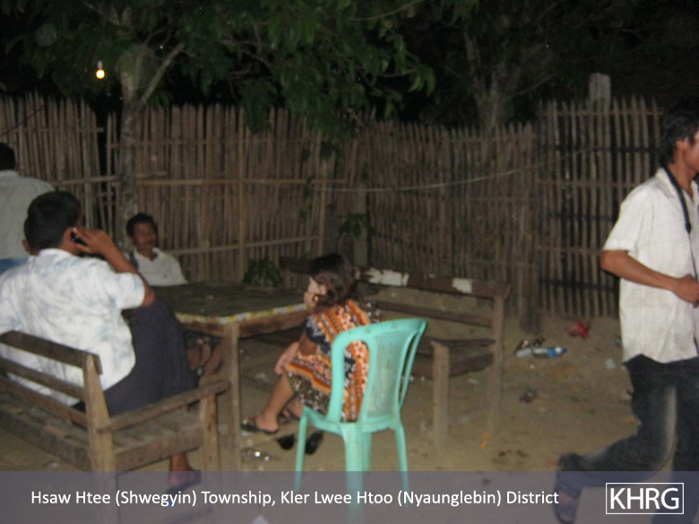 Nowadays, in Rangoon, Karen girls and other ethnic girls sell their bodies in many ways to be able to support their families. There are a lot of Karaoke shops in Rangoon and the ethnic girls have to entertain visitors who come, and prostitute their body in many ways. The Karaoke shops are called KTP and a lot of them have opened. The shops are illegal. The shopkeepers do not work and arrange secretly with local authorities, such as police and other powerful groups. Most people who go to the shops are police, Burmese leaders, rich people and people who take bribes. It is depressing for our Karen girls and other ethnic girls. In Kyauk Ta Kah Township, Taw Kweh Aye area, the villagers face problems and poverty. They have to sell their body. This happens because the country's politics are not stable and the civilians have to face problems and poverty.