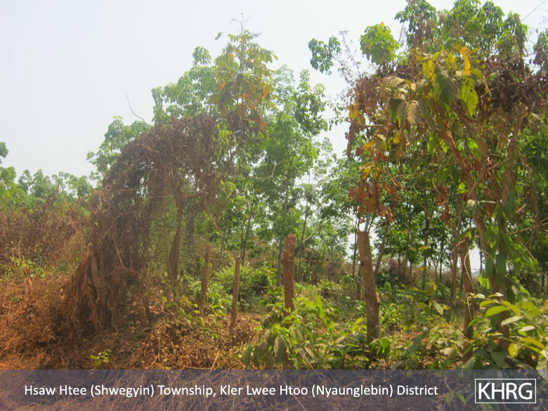 In Ler Doh and Hsaw Htee townships, wealthy people[3]  purchased land from the government and planted rubber plantations, but some haven not been planted yet, as the KNU protected the land. However, the wealthy people took some land from a forest reserve; some are from places where residents farm hill fields and search for firewood. Some are people's farms, but since the government does not recognize [the land] as farms, they registered them as uncultivated land and sold them to wealthy people.