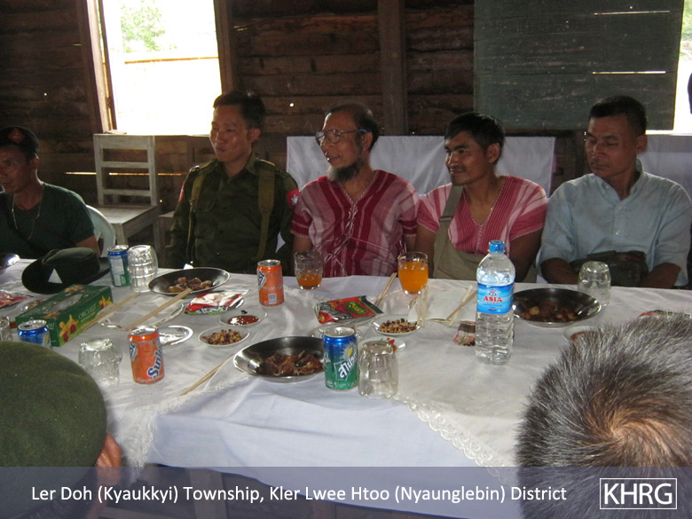 The KNU 3rd Brigade leaders who went to meet the villagers did not wear soldiers' uniforms and did not bring weapons. They wore Karen traditional shirts and went to one village after another, and a group of villagers travelled with them to one village after another village. There were 15 leaders of the KNU 3rd Brigade who were travelling, and there would be over one hundred people, including villagers, who went with them. The villagers got an opportunity to report and talk about their opinions and ideas in all meetings. In the meeting in Da La Say village tract, Thay Plaw Tah village, the village head reported that: "Because of the battles over 60 years, the villagers are getting poorer and have become refugees. A lot of people have to go and be slaves in other countries, so we need lasting peace for our new generation in the future. Currently, there is [only a] ceasefire and our villagers do not feel there is enough peace, so we hope to gain lasting peace in our country."