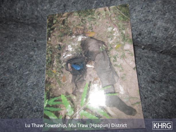 [8] During March and April 2012, the KHRG office field Director visited the area separately from the community member who wrote this report. During that visit, it was reported to KHRG that the home guard members had discovered Saw K--- and Saw H--- on March 9th, but were unable to access their bodies until March 16th, because Tatmadaw soldiers remained in the area where the shooting occurred.