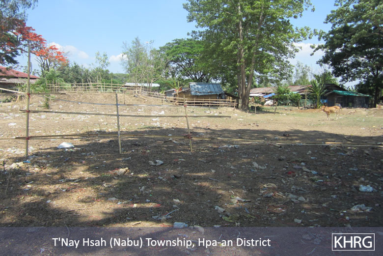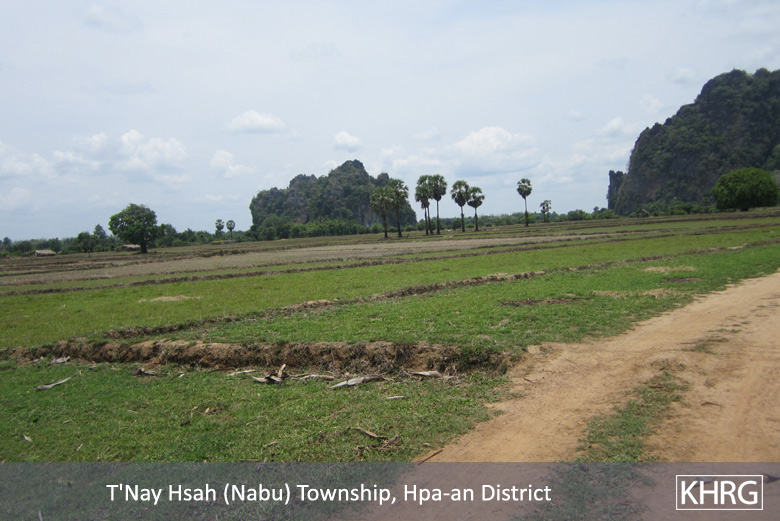 This report includes a situation update submitted to KHRG in July 2013 by a community member describing events occurring in Hpa-an District between March to May 2013, including land confiscation, killing and drug-related incidents in T'Nay Hsah Township. The situation update describes more than 1,000 acres of villagers' lands in T'Nay Hsah Township that were confiscated in the mid-1990s by Tatmadaw Battalions #547, #548 and #549. As a result, about 150 villagers have continued to shelter in a monastery for nearly two decades because their land was confiscated. Villagers appealed to local authorities by furnishing their land grants, but were informed by the Tatmadaw that their land grants are illegal and the lands belong to the military. The update also describes two villagers, a 16-year-old boy from Y--- village and a 62-year-old woman from G---, who were killed in separate incidents by BGF Battalion #1016 soldiers in T'Nay Hsah Township in disputes related to a methamphetamine pill commonly referred to as yaba. According to the report, many young people use the drug, but villagers are afraid to speak against drug abuse because BGF soldiers are involved in its sale. The update also describes two BGF veteran commanders who confiscated 20 acres of land owned by two women from H--- village, Ta Kreh Township. The commanders demanded the women pay a total of 1,100,000 kyat (US $1129.23) for return of the land; the women negotiated with the soldiers, but ultimately sold their personal belongings in order to pay for the return of their land.