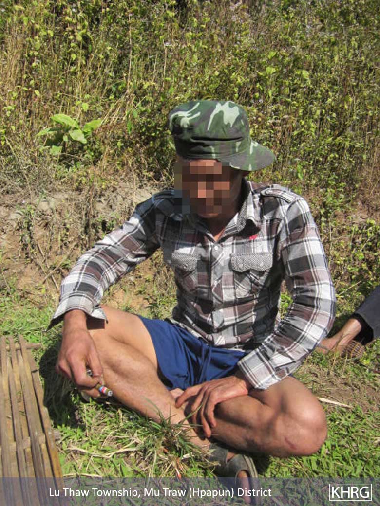 The photo was taken on December 22nd 2013 in E--- place, Hpla Hkoh village tract, Lu Thaw Township, Hpapun District, and it shows the vice village head of B--- village, Saw D---, 32 years old, who also reported about Tatmadaw’s mortar shelling and military activities in Lu Thaw Township. [Photo: KHRG]