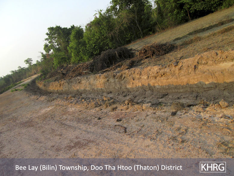 This News Bulletin describes land confiscation which occurred as a result of a road repair and expansion project in Bilin Township, Thaton District, from January 2nd – 4th, 2014. On January 2nd 2014, the Zwe Nyi Naung Company arrived in D--- village, Hta Paw village tract, Bilin Township, Thaton District to repair and expand a road. The project resulted in the confiscation of villagers’ plantation lands, paddy fields and the yard around a house. The villagers raised their concerns, as they lost their land, and they would like to be compensated for what they have lost.[1]