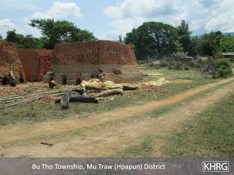 The Burmese [Tatmadaw] soldiers have modified their battalions and built many buildings for the military in Meh Ka Law village tract, Bu Tho Township from February [2014] until June [2014]. [Tatmadaw] GE [General Engineering Platoon Officer] U Htay Aung Kyaw and LIB [Light Infantry Battalion][3] #434’s Commander U Kyaw Min Bone [used soil and clay] from the farms that they confiscated from the villagers to make bricks. U D---, a villager from H---, went to the commander of LIB #434 and asked permission to make bricks [for commercial purposes on that land] and he has to pay [LIB #434] 400,000 kyat (US $402.82)[4] per summer. The commander of LIB #434 said [to the villagers] that he is making bricks in order to fund the battalion.