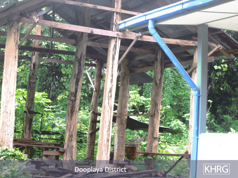 The above photo was taken on September 28th 2013 in Kwee Hkler village in Dooplaya District, showing the clinic that was demolished by the Tatmadaw and is planned to rebuilt by them. [Photo: KHRG]