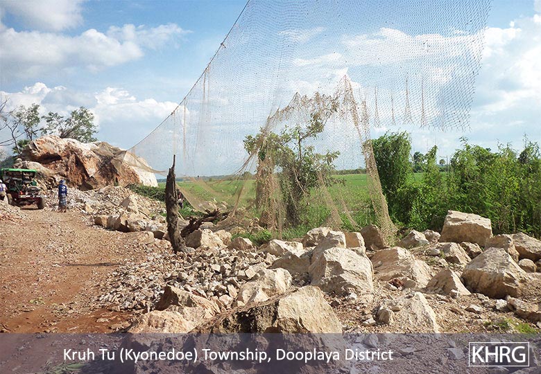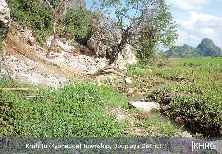 This Short Update describes events occurring in Kyonedoe Township, Dooplaya District during February 2014. It includes information regarding stone mining in A--- village that is currently causing problems for the villagers. Stones from the mine have been scattered on villagers’ farmland, injuring their work animals and adding additional costs to the planting process. Although villagers reported the incident to the village administration, the case has not yet been investigated.