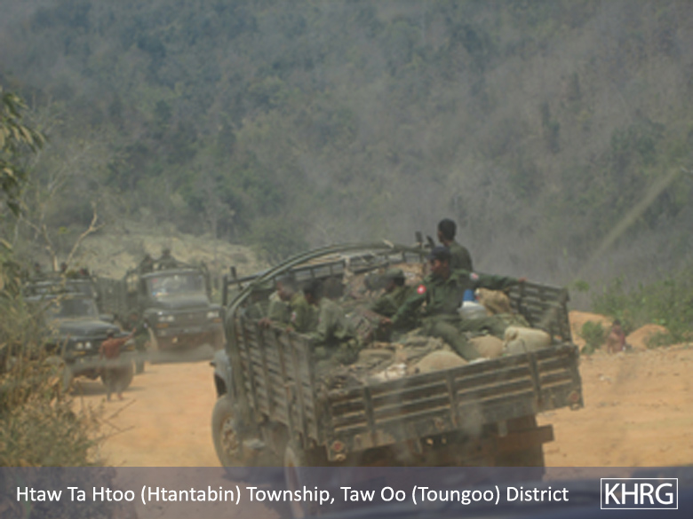 • In Toungoo District, the Tatmadaw are as active as they were in the past. They send their rations to the camps once every three months. On February 12th 2015, Military Operations Command (MOC) #20 was replaced by MOC #5, bringing approximately 80 military transport vehicles with them.
