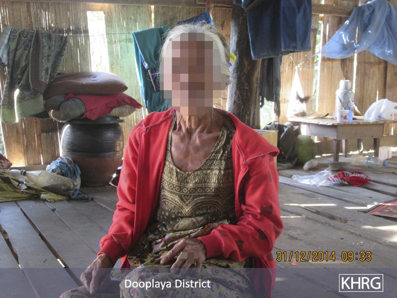 The above photos were taken on January 22nd 2015 in F--- village, A’Nan Kwin village tract, Win Yay Township, Dooplaya District. The photo on the left shows Saw E---’s wife who lost her house and land due to the construction of the Asian Highway. The photo on shows Saw G--- who also lost his house and the land his shop was on due to the construction of the Asian Highway. [Photos: KHRG]