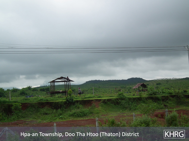 [4] D--- village is located on both sides of the main vehicle road from Hpa-an Town in Hpa-an District to Yangon. The village is a Karen village in which villagers mostly do subsistence farming. D--- village is divided into two parts, B--- which is the upper or eastern part, and C---, which is the lower, or western part. The two parts are separated by the vehicle road. B--- is a disputed territory, as it has been designated as a forest reserve by the Burma/Myanmar government despite villagers proclaiming it their inherited land and place of residence, and despite the land not actually containing a forest. For further information, see, “Forced relocation and destruction of villagers’ shelters by Burma/Myanmar government officials and police force in Hpa-an Township, Thaton District, June 2015,” KHRG, August 2015.