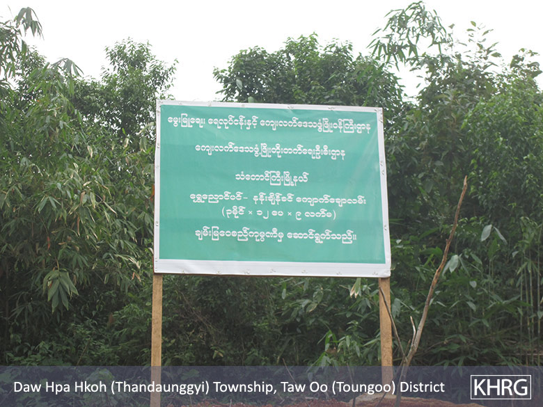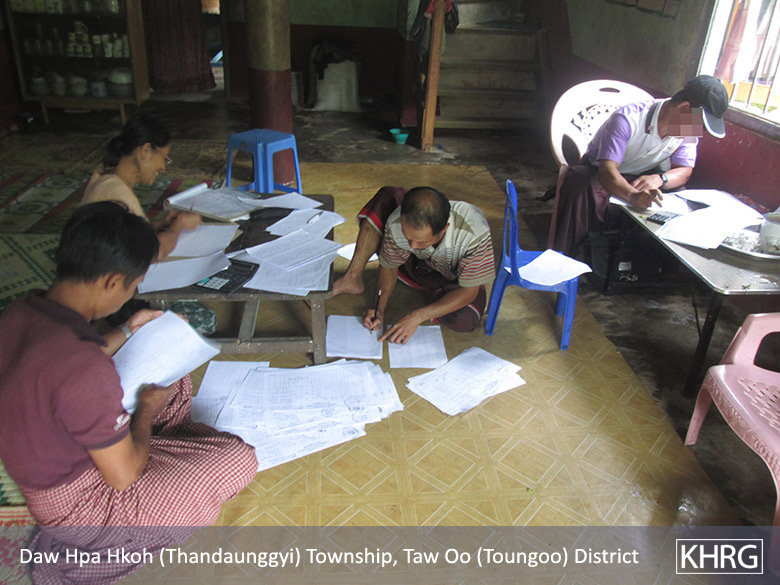 Regarding administration in Thandaunggyi Township, Toungoo District, since the village tract administration are supported [financially] by the [Burma/Myanmar] government and is under the control of the government, it is difficult for the civilians to feel protected [under this] administration. In order for the villagers to obtain an identification card, they need to get a permission letter from the village head. A Shwe Nyaung Pin villager in Thangaunggyi Township mentioned in an interview that he had difficulties getting his household documents[15] [from the village head].