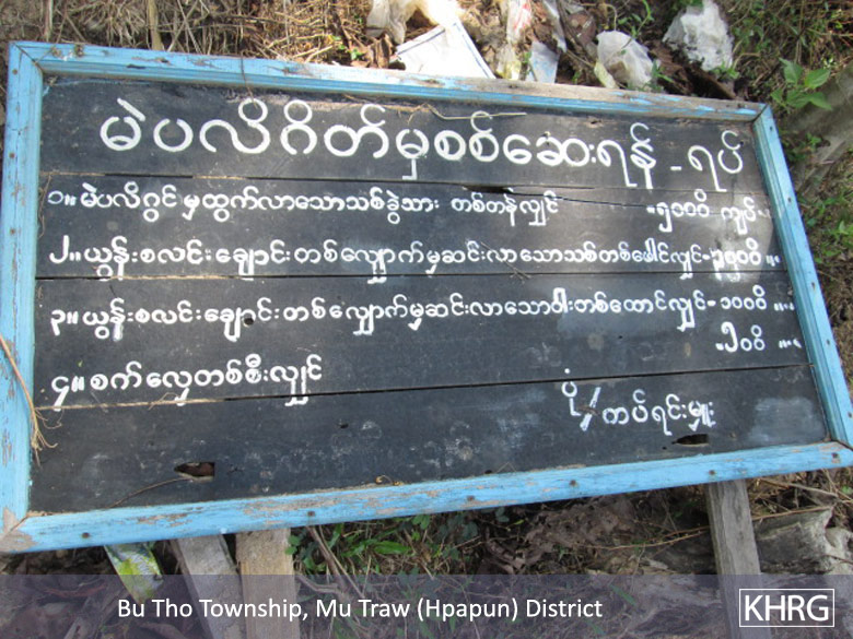 [17] See “Hpapun Situation Update: Bu Tho Township, August to November 2013,” KHRG, August 2014.