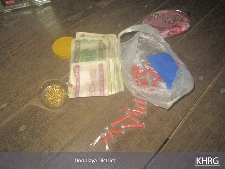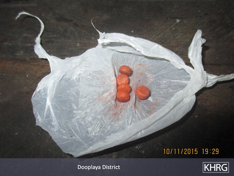 According to a KHRG community member from Dooplaya District, the sale of yaba (methamphetamine)[5] drugs in the villages near Kawkareik Town increased in 2015 and continues to increase in 2016. He reported that usually, it is the older women, those who are married to armed group members, who secretly sell yaba when their husbands are not home.[6] The sale of drugs also occurs in many other places near the Thai-Burma/Myanmar border, such as Waw Lay village, Thay Baw Boh village and Hpa Lu village.