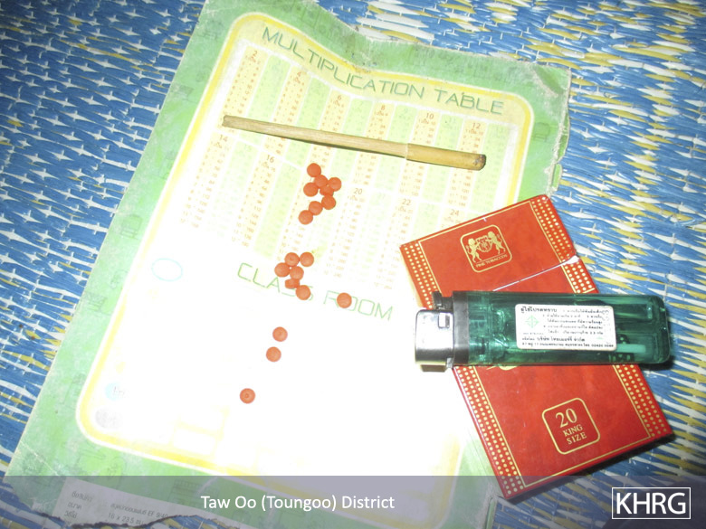 As can be seen in previously published KHRG reports,[2] armed groups such as the Karen National Union (KNU), Democratic Karen Benevolent Army (DKBA),[3] Border Guard Force (BGF)[4] and the Tatmadaw have previously attempted to cooperate to address the drug issues affecting communities in Karen State and take serious action in cases related to drugs. However, the production, sale and use of drugs are ongoing and have become a point of great concern in Karen State, especially in Hpa-an and Dooplaya districts.