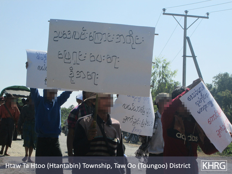 - The villagers from Hseik Pu Taung and Nan Ga Mauk village tracts held two protests on December 5th 2015 and on January 12th 2016, respectively, in order to get back the 2,400 acres of land which were confiscated by Kaung Myanmar Aung Company.