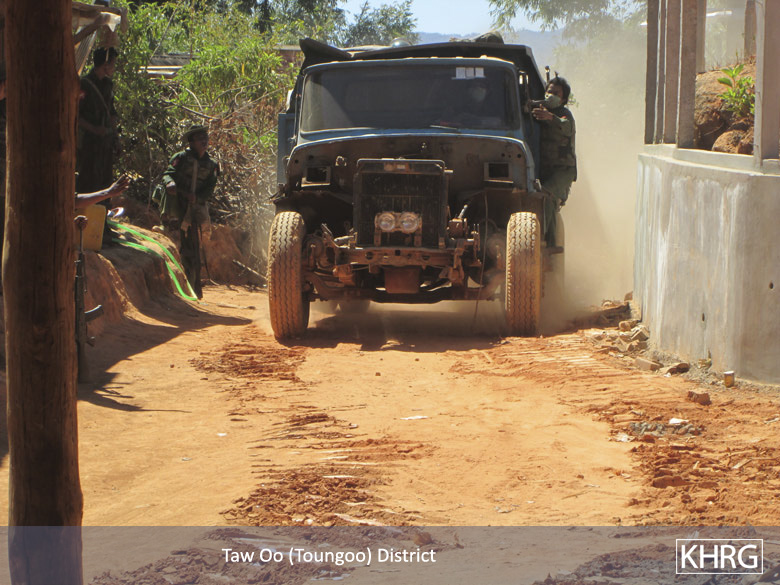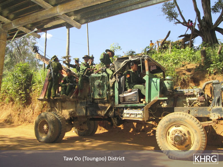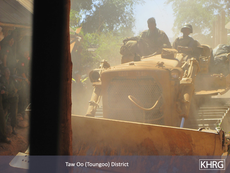 This Photo Set shows militarisation and land confiscation by the Tatmadaw, military rotations, transportation of rations, road repairs for military use, and land confiscation for military camps in Htantabin and Thandaunggyi Townships, Toungoo District between November 2013 and March 2015.