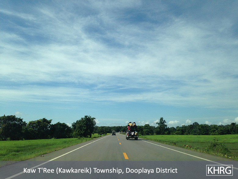 [8] The Asian Highway Network is a United Nations Economic and Social Council for Asia and the Pacific-supported project that aims to link 32 countries in Asia across 141,000 kilometres of roadway. In Burma/Myanmar the project has involved land confiscation and forced labour. For more information about the Asian Highway Network, see “The Asia Highway: Planned Eindu to Kawkareik Town road construction threatens villagers’ livelihoods,” KHRG, March 2015; “‘With only our voices, what can we do?’: Land confiscation and local response in southeast Burma/Myanmar,” KHRG, June 2015; “Tollgates upon tollgates: En route with extortion along the Asian Highway,” KHRG, October 2009; and “Development by Decree: The politics of poverty and control in Karen State,” KHRG, April 2007. In addition, fighting continues erupting between the Tatmadaw and the DKBA along the highway, with the latest clash erupting in early July 2015, resulting in the highway between Myawaddy and Kawkareik shutting down for several days, “DKBA, Tatmadaw fight over illegal highway tolls,” Burma/Myanmar Times, July 3rd 2015.