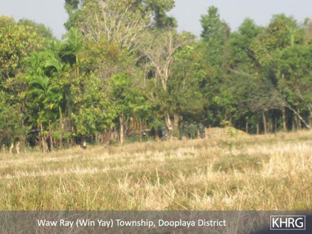 Despite Burma/Myanmar government and Karen National Union (KNU) signing the preliminary ceasefire in January 2012, it has not stopped the fighting on the ground, and there is also ongoing militarisation in Kawkareik Township, Dooplaya District. The Tatmadaw’s Border Guard Force (BGF) Battalion #1022, led by Battalion Commander Mote Thone, extended two small camps nearby Myawaddy Town, Kawkareik Township, controlled by the commander of Brigade 6 (Dooplaya District) KNLA Headquarters Special Command, Captain Hla Min.