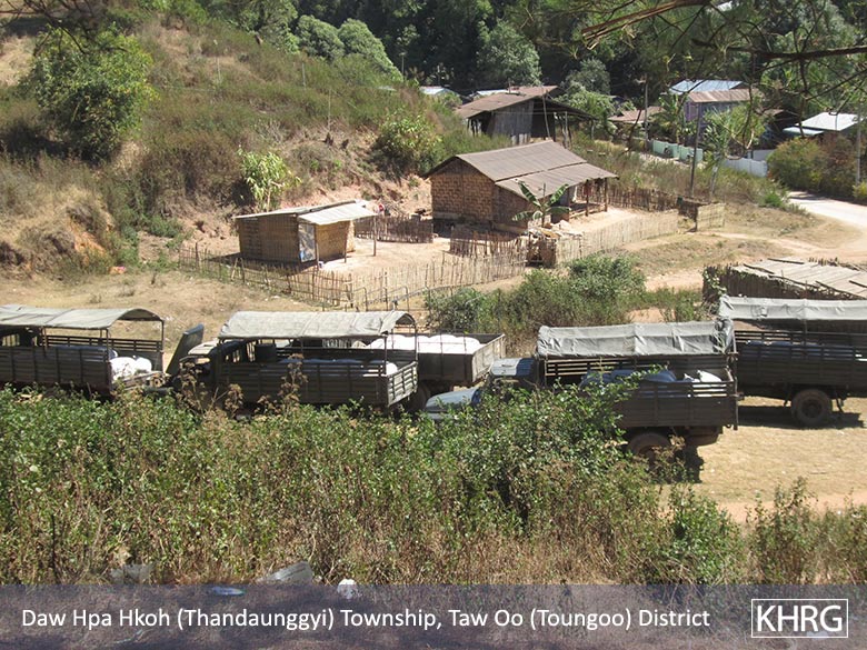 [20] Toungoo Situation Update: Thandaunggyi and Htantabin townships, November 2014 to February 2015,” KHRG, July 2015; “Toungoo Situation Update: Thandaunggyi and Htantabin townships, July to September 2015” KHRG, July 2016.