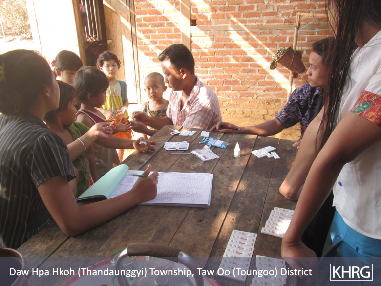 The Burma/Myanmar government healthcare services are not reaching remote areas in Toungoo District. Healthcare services in areas such as Thandaung Myo Thit are therefore poor due to the lack of medicine in clinics, and medics and doctors are providing insufficient services to local residents. Doctors or medics sometimes refer patients to the Thandaung district hospital, which has better treatment compared to the hospital in Thandaung Myo Thit, which charges fees that are too high for rural villagers.