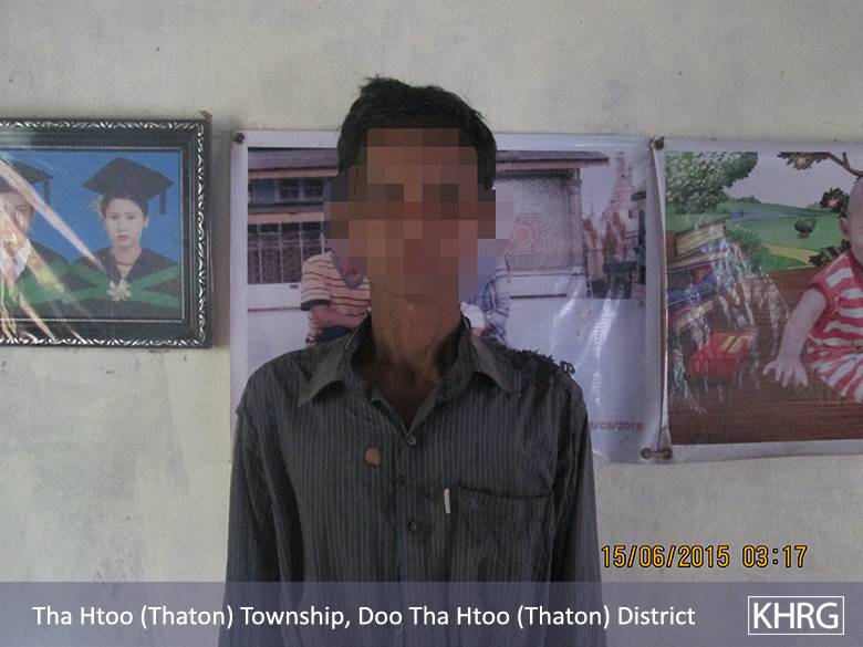 The following Interview was conducted by a community member trained by KHRG to monitor local human rights conditions. It was conducted in Thaton District on July 26th 2015 and is presented below translated exactly as it was received, save for minor edits for clarity and security.[1] This interview was received along with other information from Thaton District, including two other interviews, one photo note, one situation update, 238 photographs and 1 other document.[2]