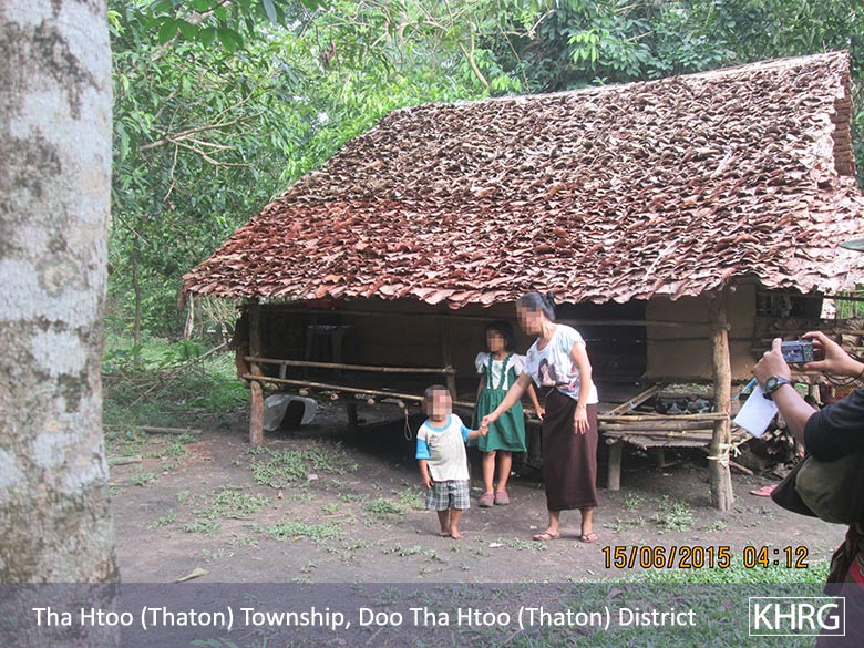 These two photos were taken in June 15th 2015, in Doo Tha Htoo [Thaton] District, Thaton Township, Sa Kan Gyi village tract, B--- Village and F---Village. These are the photos of Saw D---‘s family (first photo, left) and Saw E--- (second photo, right). Saw D--- and Saw E--- were arrested without sufficient evidence following the Yar Zar Min bus robbery. [Photos: KHRG]